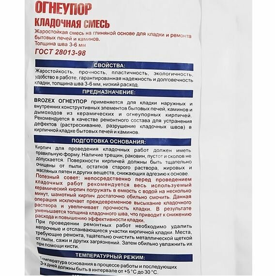 Кладочная смесь Огнеупор 4кг Брозэкс KF 22 информация: