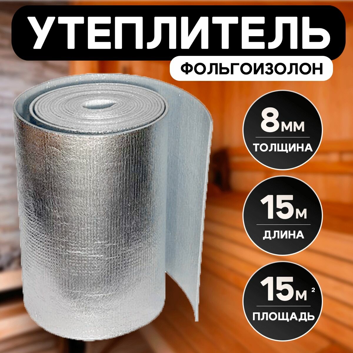Теплоизоляция Фольгоизолон для дома толщина 8 мм,ширина 1 м,длина 15м / утеплитель подложка в рулоне информация: