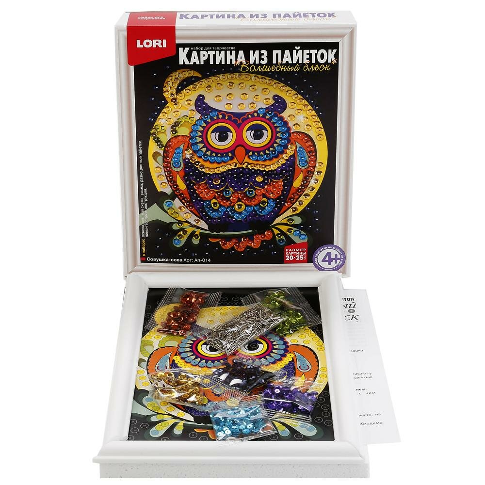 Аппликация-картина из пайеток Lori "Совушка-сова", 20*25см, от 4-х лет 302 ₽