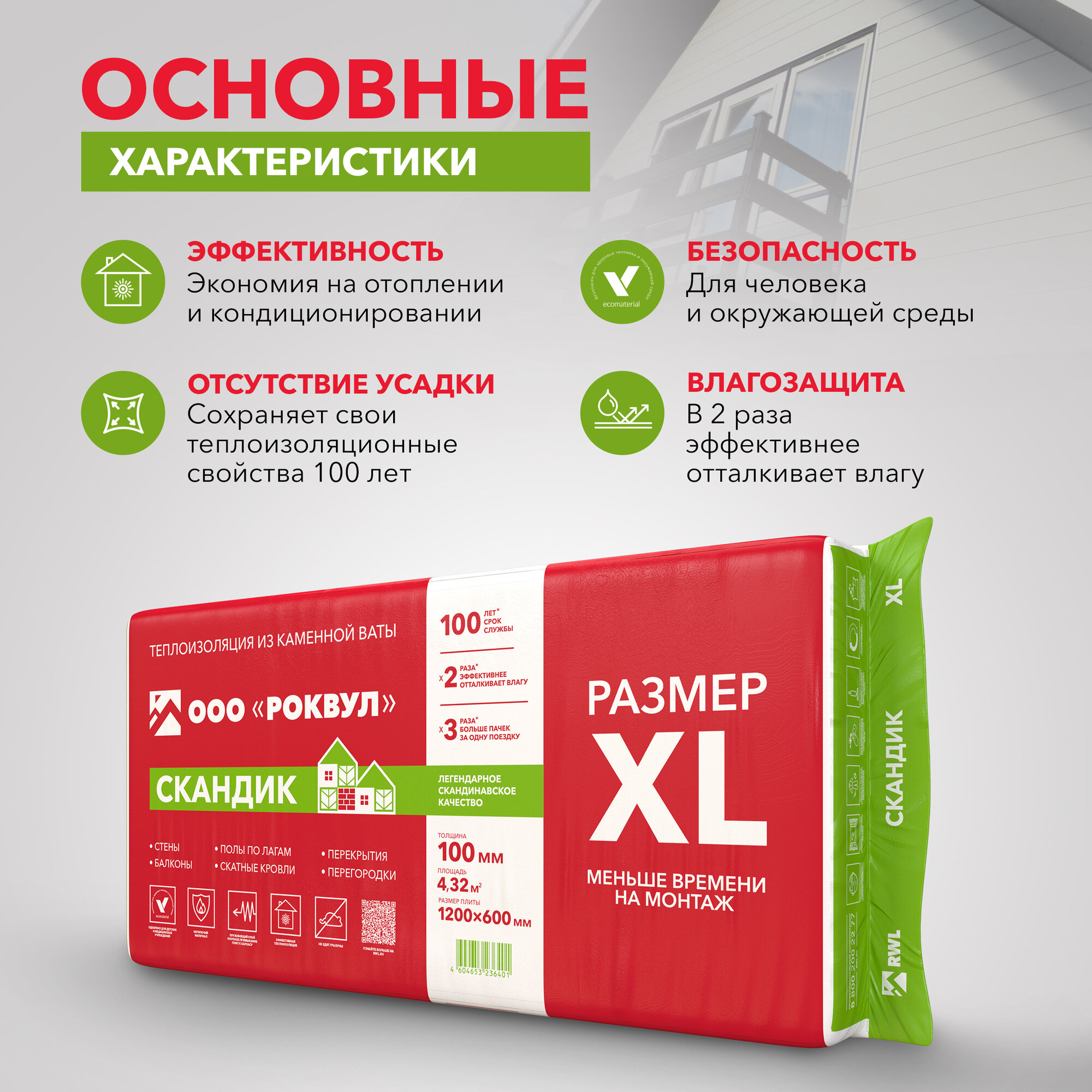 Теплоизоляция Роквул Лайт Баттс Скандик, XL 100 мм информация: