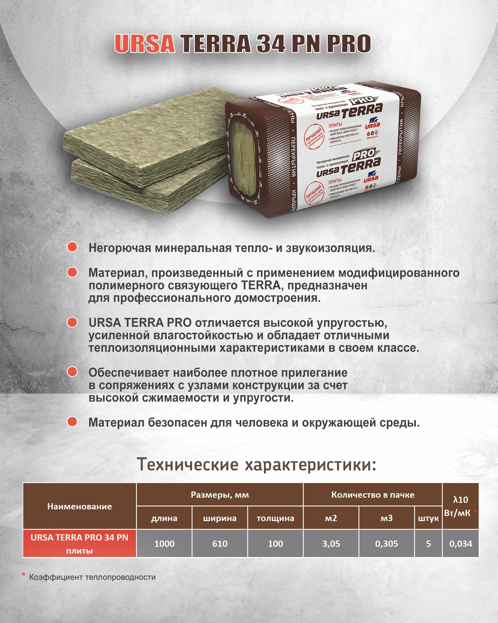 Утеплитель для стен и крыши URSA TERRA 34 PN PRO 50 мм 18 шт 109.8 м2 информация:
