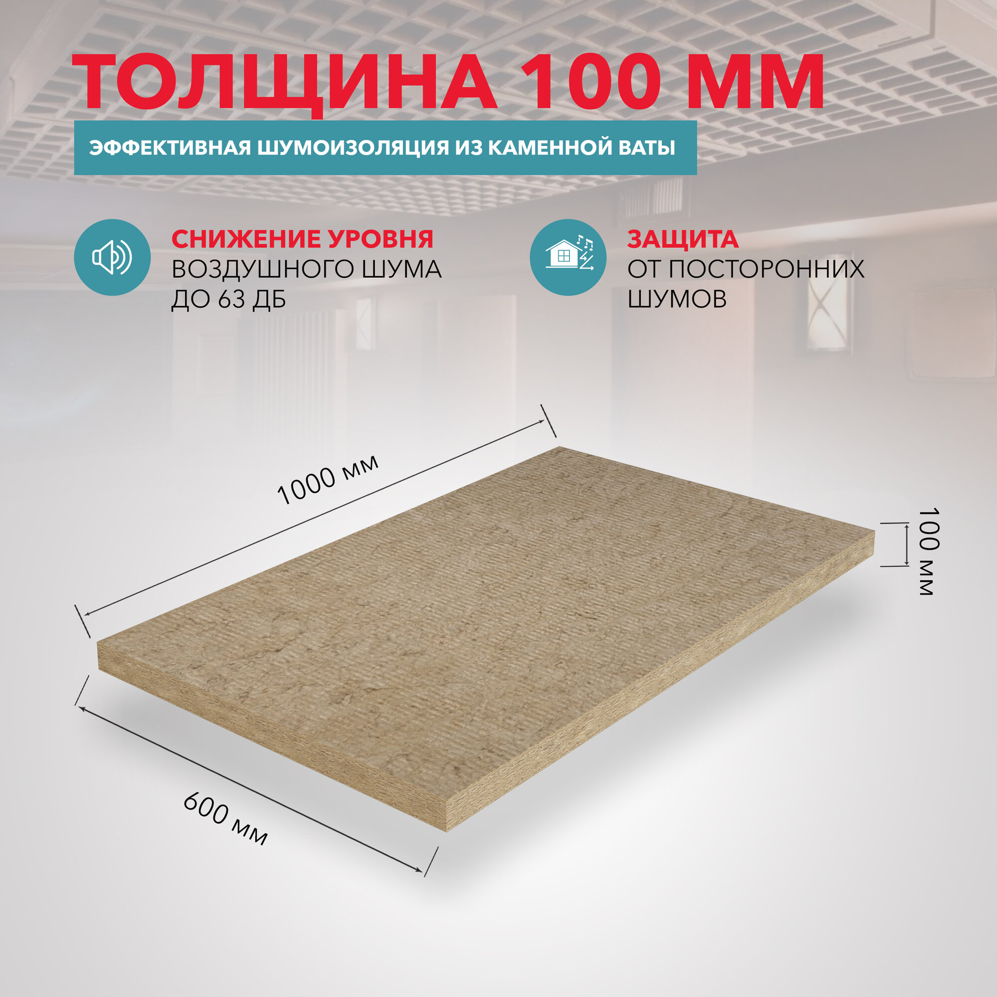 Шумоизоляция Rockwool Акустик Баттс 1000x600x100 мм 3 м2, объем упаковки 0.3 м3