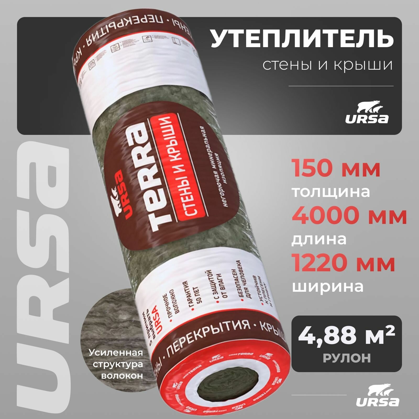 Утеплитель рулонный URSA Terra Стены и крыши (4000/1220/150мм, 1 мат, 4.88 м2, для утепления мансард, стен, скатных крыш информация: