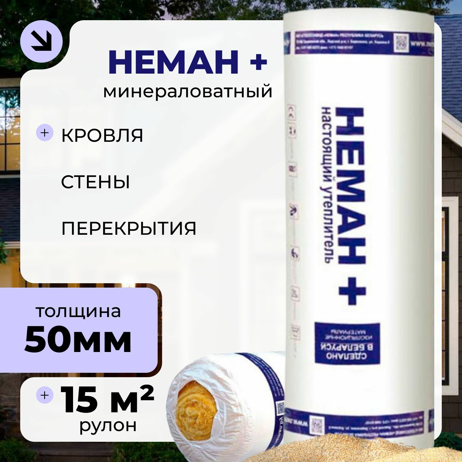 10 цен на Утеплитель в рулоне 1 шт. 15м2 минеральная вата 50мм Неман + для стен, кровли, перекрытий