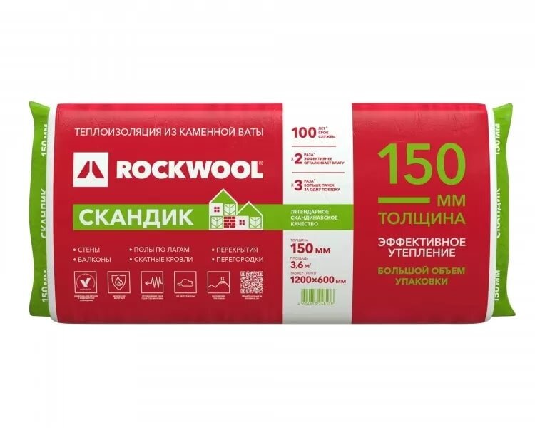 Утеплитель Роквул Лайт Баттс Скандик 150х600х1200 мм 3,6 кв.м информация: