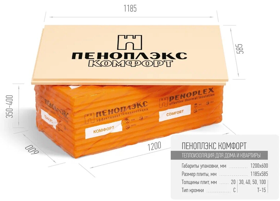 Экструзионный пенополистирол XPS пеноплэкс комфорт 1185х585х50 мм информация: