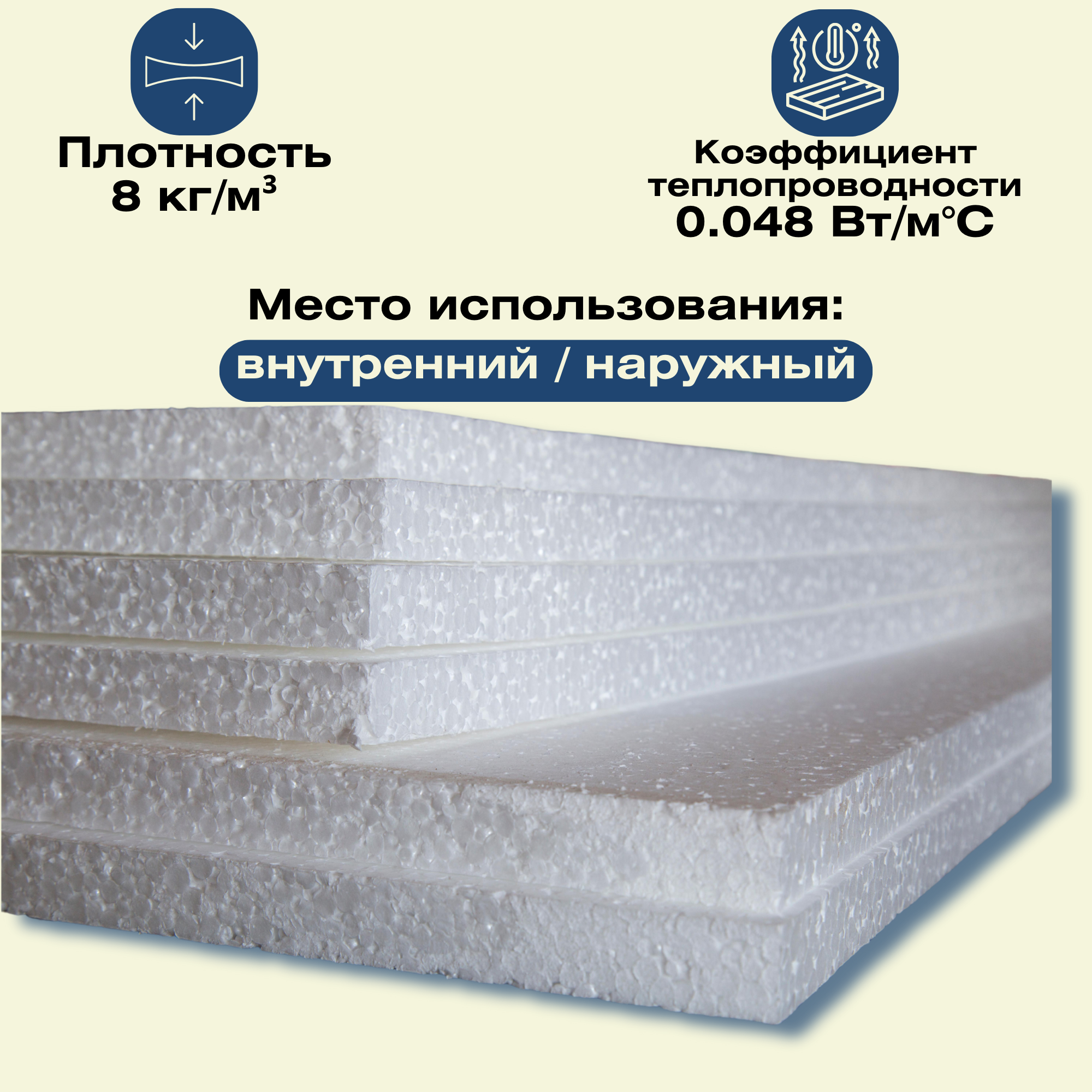 Теплоизоляционный материал Пенопласт 600x1000 мм, толщина 30 мм, 10 листов, для изоляции и утепления наружных и внутренних помещений информация: