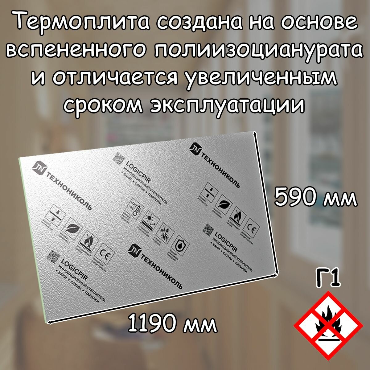 Пир плита 50 мм для Балкона 15 плит (3 уп. по 5 шт.) Технониколь Logicpir Фольга/Фольга (1190х590 мм / 10.53 Кв.м) Pir утеплитель с L-кромкой информация: