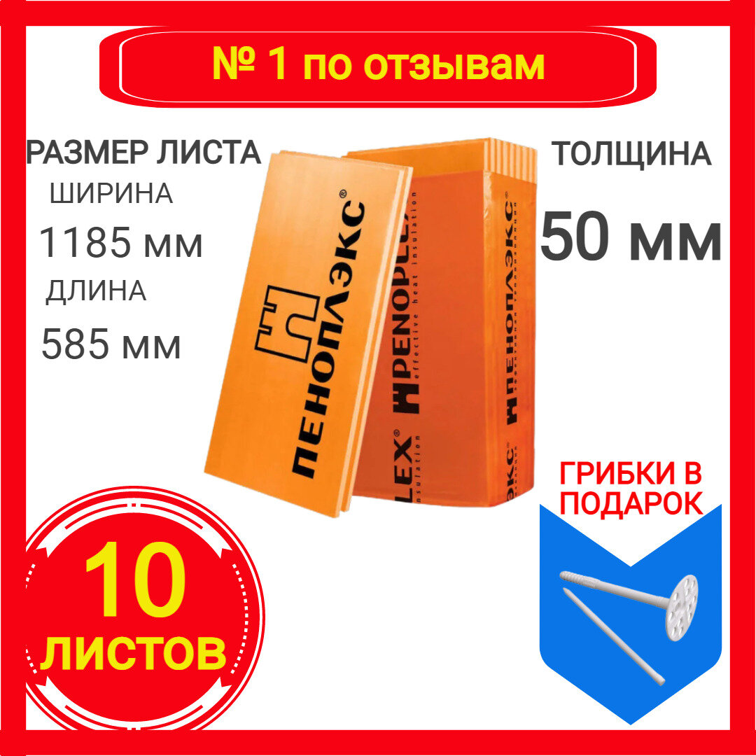Утеплитель Пеноплекс 50 мм Комфорт 10 плит 7м2 из пенополистирола для стен, крыши, пола информация: