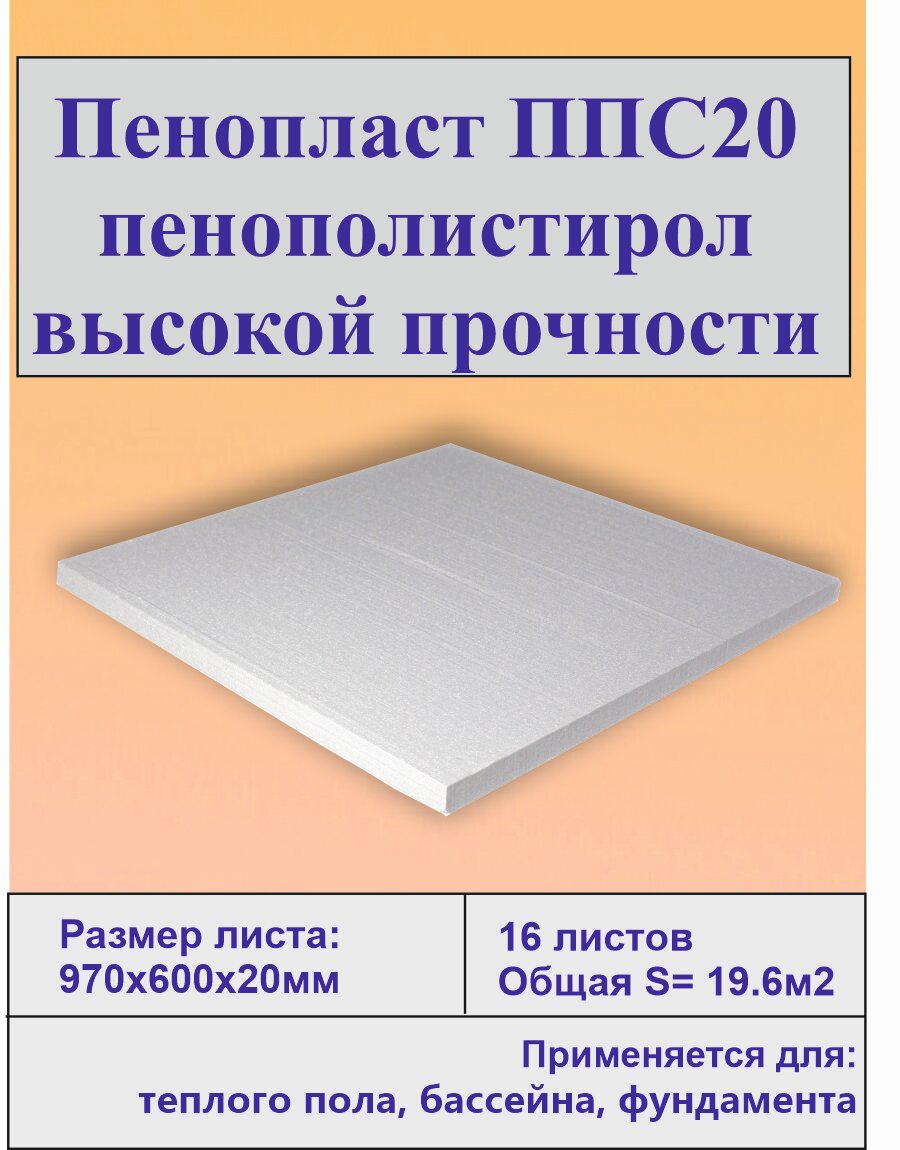 Отзывы на Утеплитель пенопласт "ППС-20" для фундамента, бассейна, теплого пола, 16 листов в упаковке