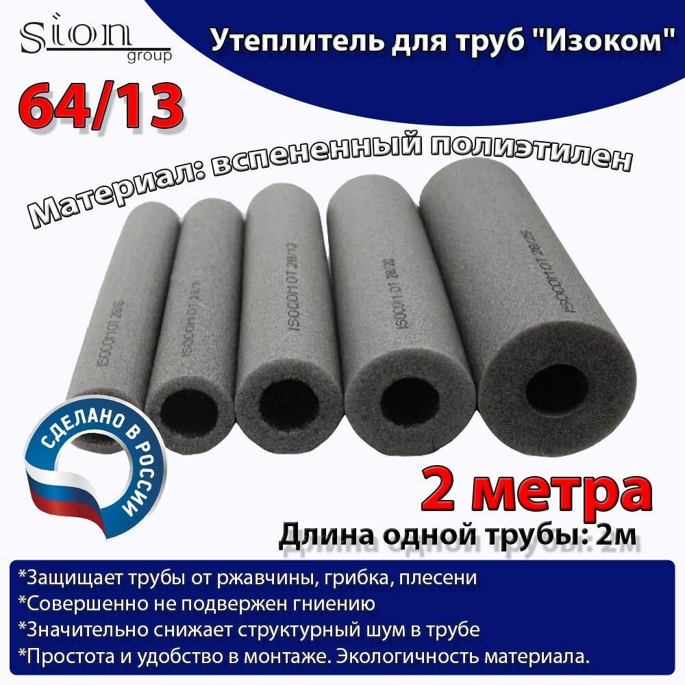 Утеплитель для труб "Изоком" 64/13 (по 2 м)-2м/трубка пенополиэтиленовая изоляционная информация: