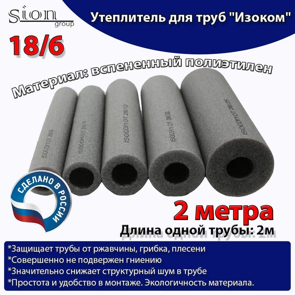 Утеплитель для труб "Изоком" 18/6 (по 2 м)-2м/трубка пенополиэтиленовая изоляционная информация: