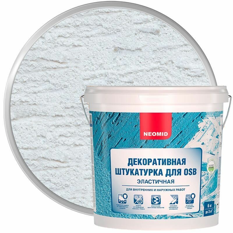 Штукатурка декоративная эластичная для плит OSB "Шуба" NEOMID (6 кг) белый информация: