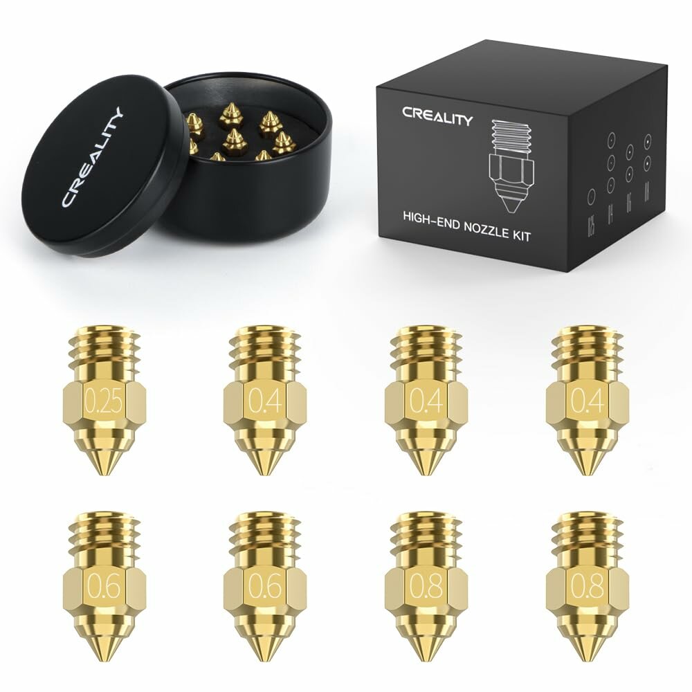 Сопло для 3D-принтера Creality, 8 шт, обновленный комплект высококачественных биметаллических сопел, высокая теплопроводность, высокая твердость, 0,25/0,4/0,6/0,8 мм, сопла экструдера Hotend для Ender-3 S1/3S1 Pro/3V2 Neo/3 Neo/3Max Neo 2 999 ₽