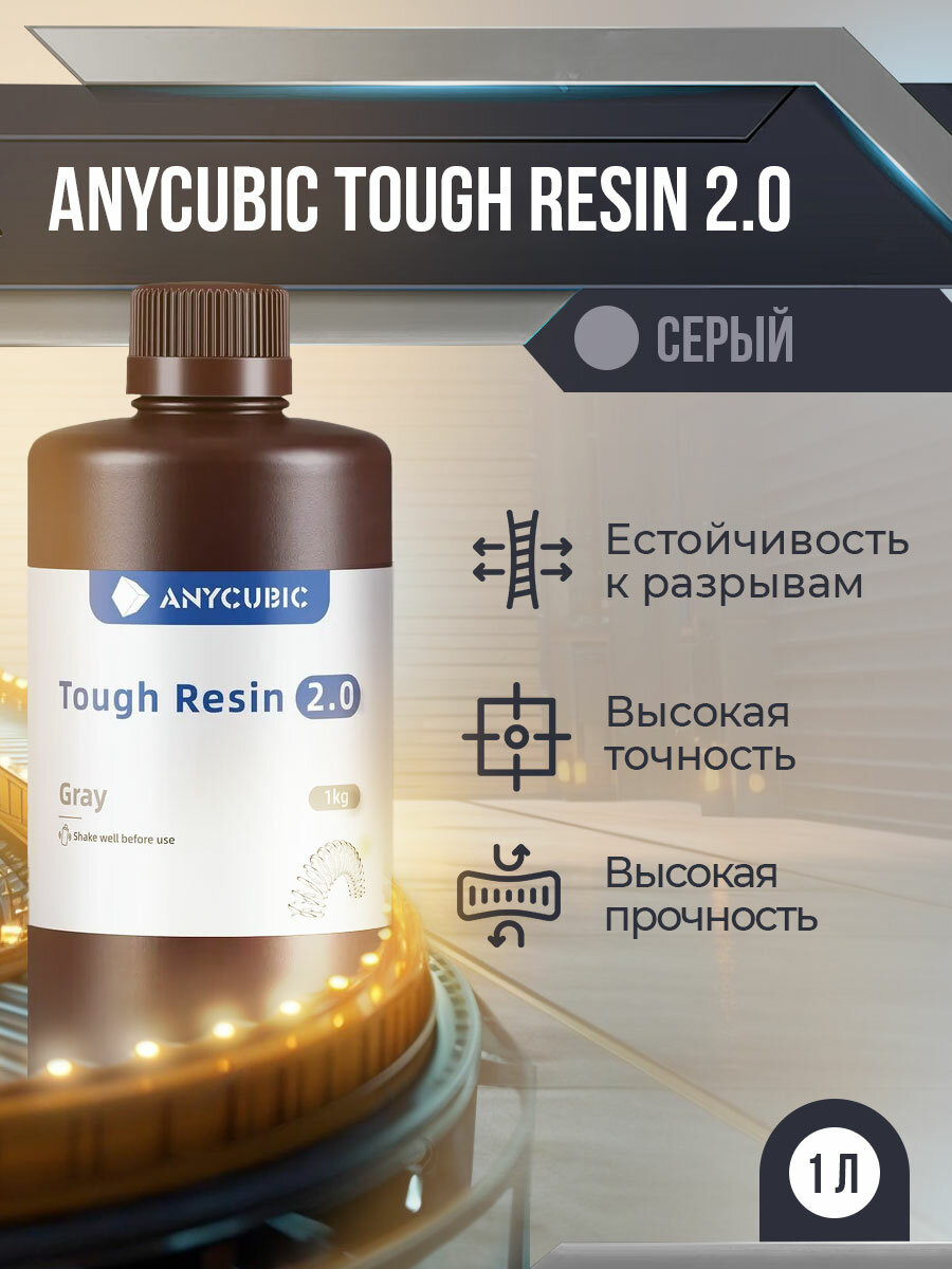 Фотополимерная смола Anycubic Tough Resin 2.0 Серый, 1 л информация: