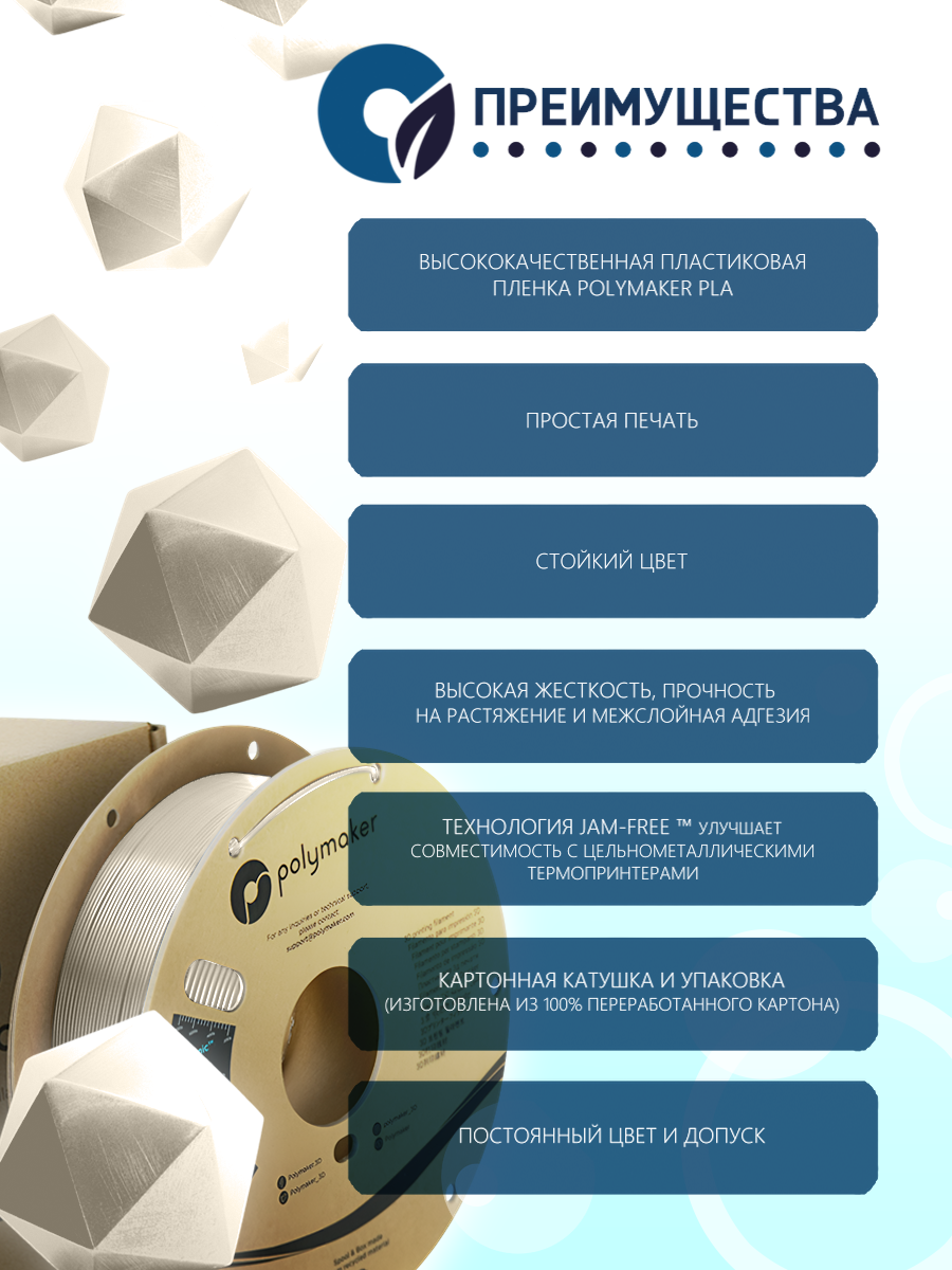 Отзывы на PLA PolyLite пластик Polymaker для 3D принтера 1.75 мм, Натуральный, 1 кг