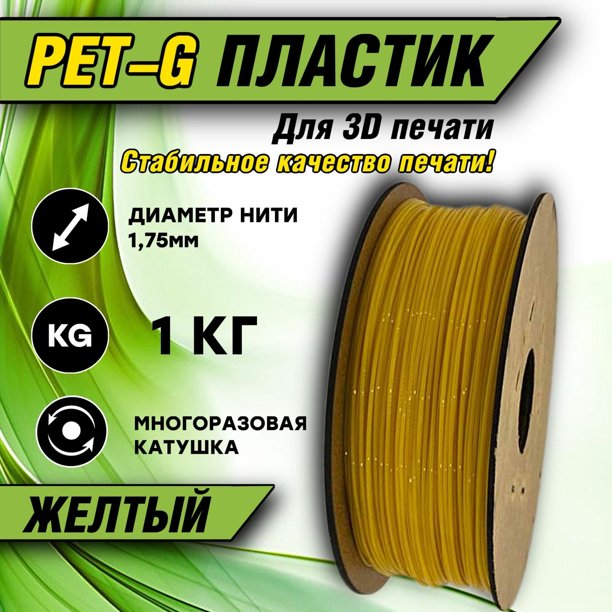 Пластик для 3d принтера PETG 1.75 "Желтый", 1 кг. информация: