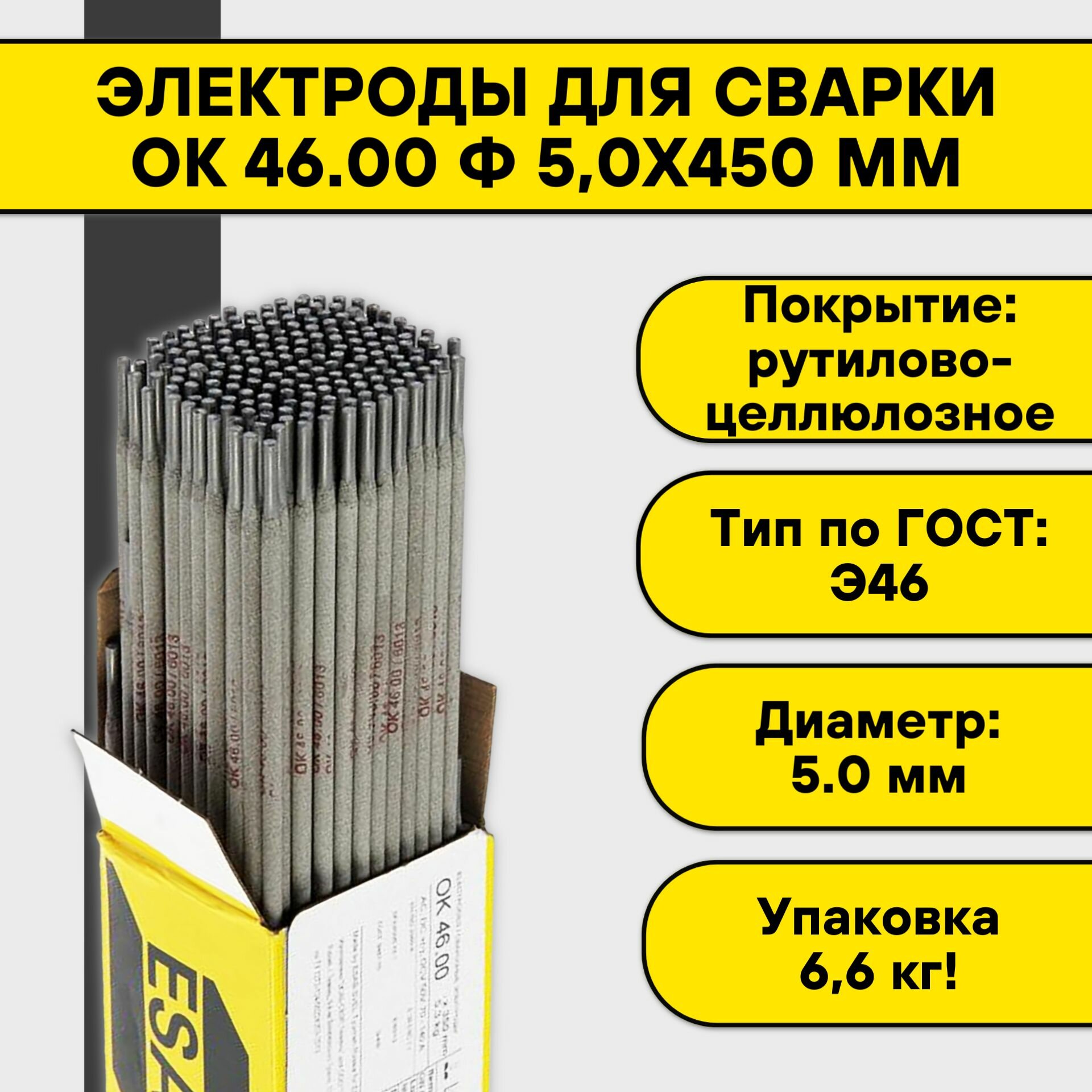 Электроды для сварки OK 46.00 ф 5,0х450 мм Esab (6,6 кг) информация: