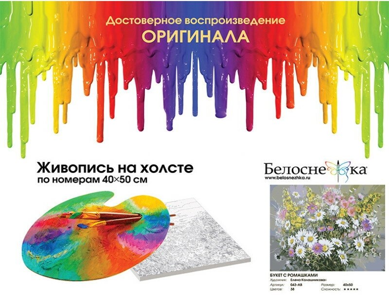 10 цен на Живопись по номерам 40х50 см Белоснежка 043-AB Букет с ромашками