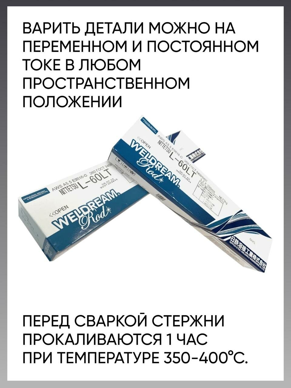 Сварочные электроды L-60LT d-3,2 мм тип Э60 NITTETSU Япония, пачка 5кг 8026964 информация: