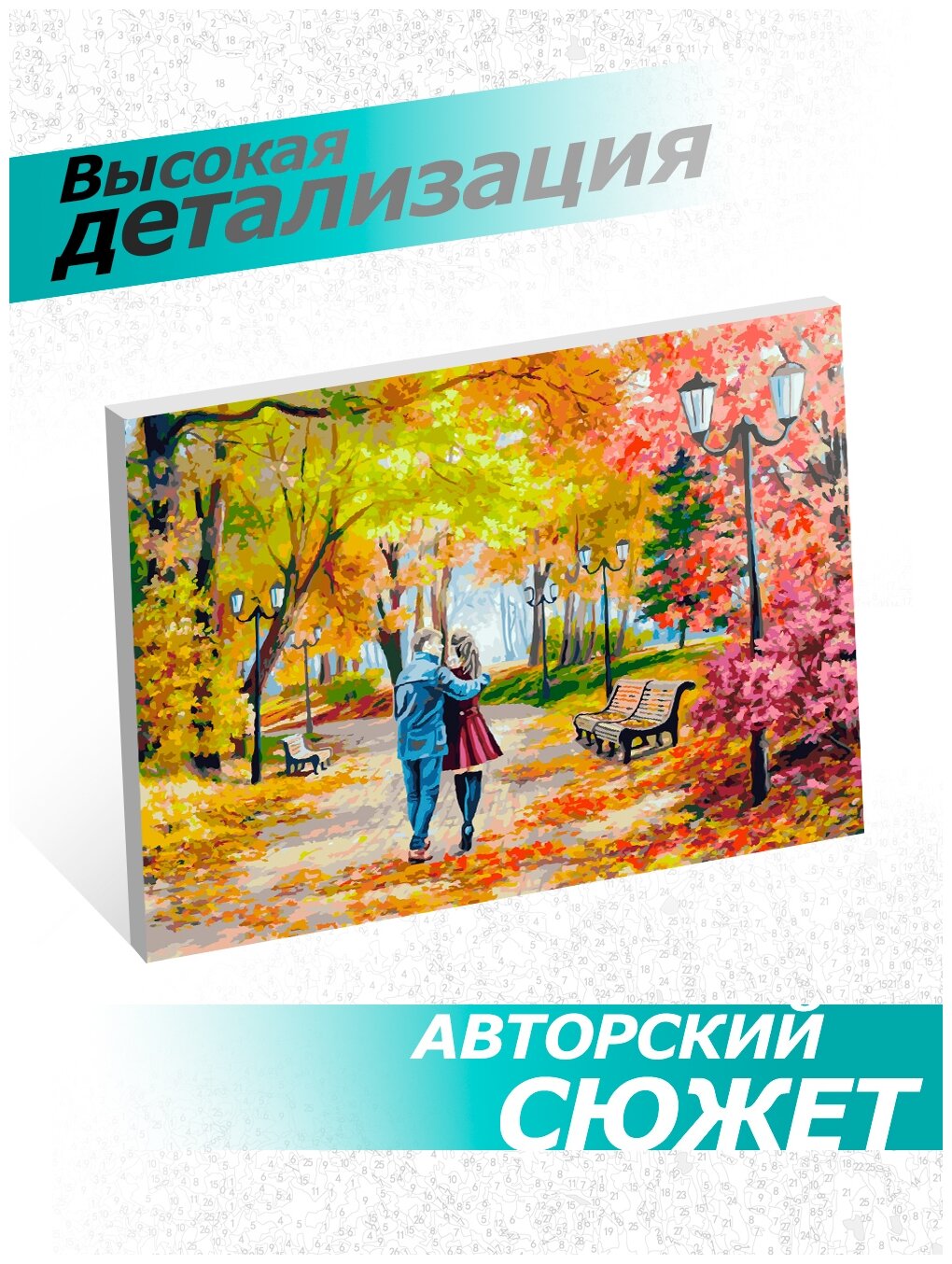 10 цен на Картина по номерам Белоснежка «Осенний парк, скамейка, двое» (холст на подрамнике, 40х50 см)
