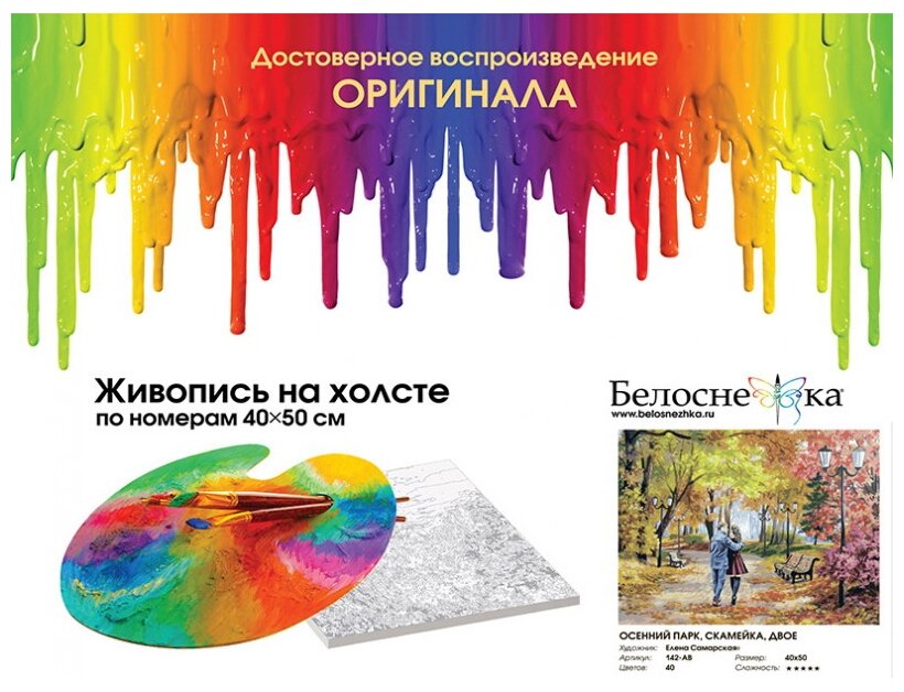 Отзывы на Картина по номерам Белоснежка «Осенний парк, скамейка, двое» (холст на подрамнике, 40х50 см)