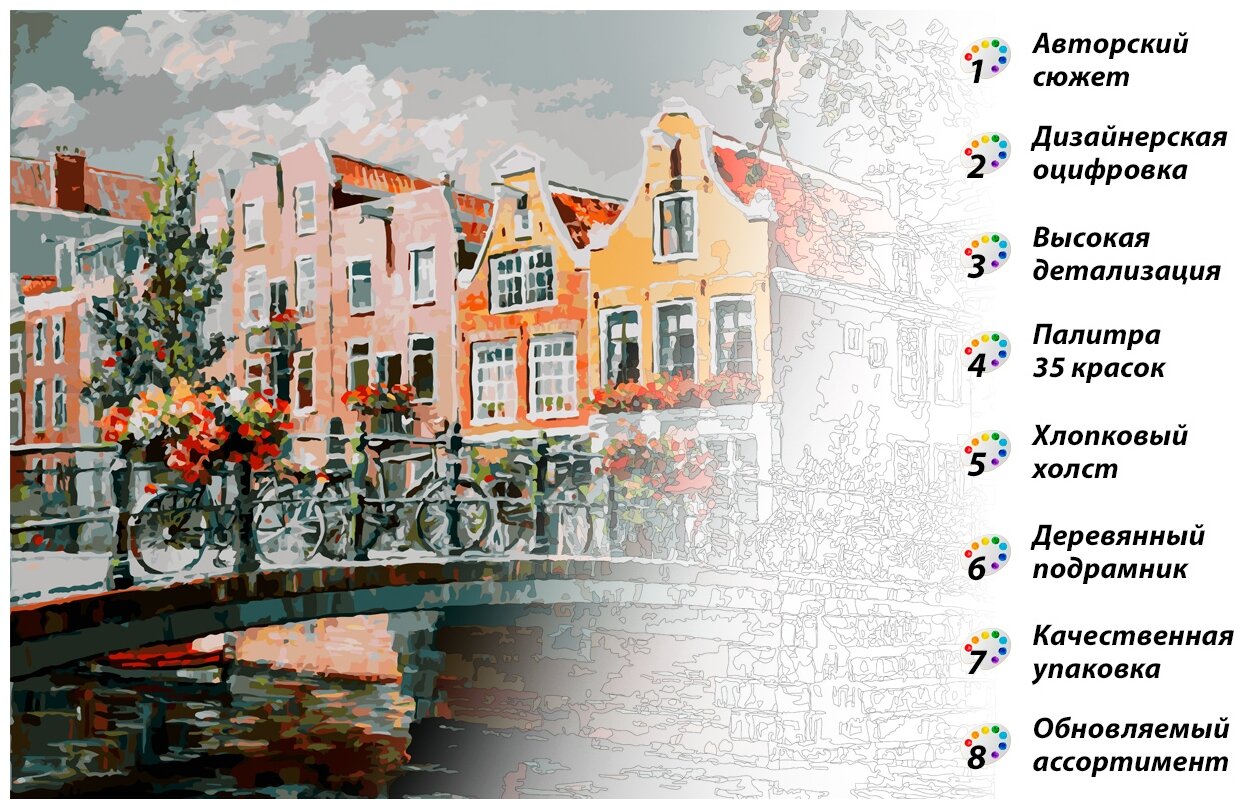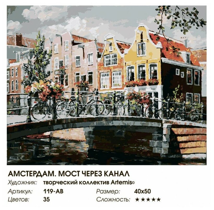 Отзывы на Картина по номерам Белоснежка «Амстердам. Мост через канал» (холст на подрамнике, 40х50 см)