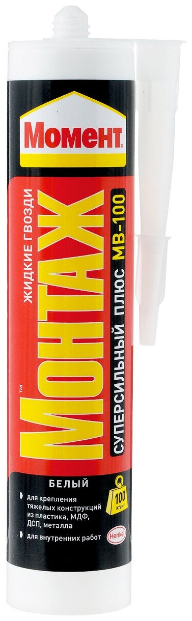 Клей момент,Монтажный клей Момент Монтаж МВ-100 Суперсильный плюс 400г белый, жидкие гвозди 1шт 539 ₽