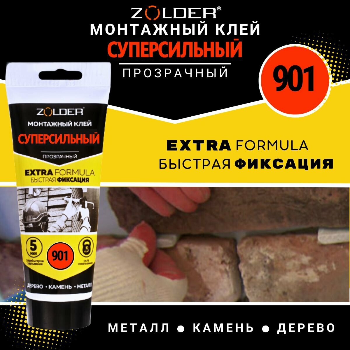 Клей монтажный ZOLDER ZN-901 Суперсильный, прозрачный, 125г информация: