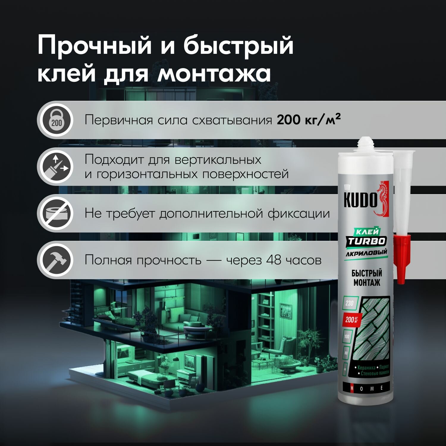 KUDO HOME TURBO клей акриловый универсальный для быстрого монтажа белый 280 мл