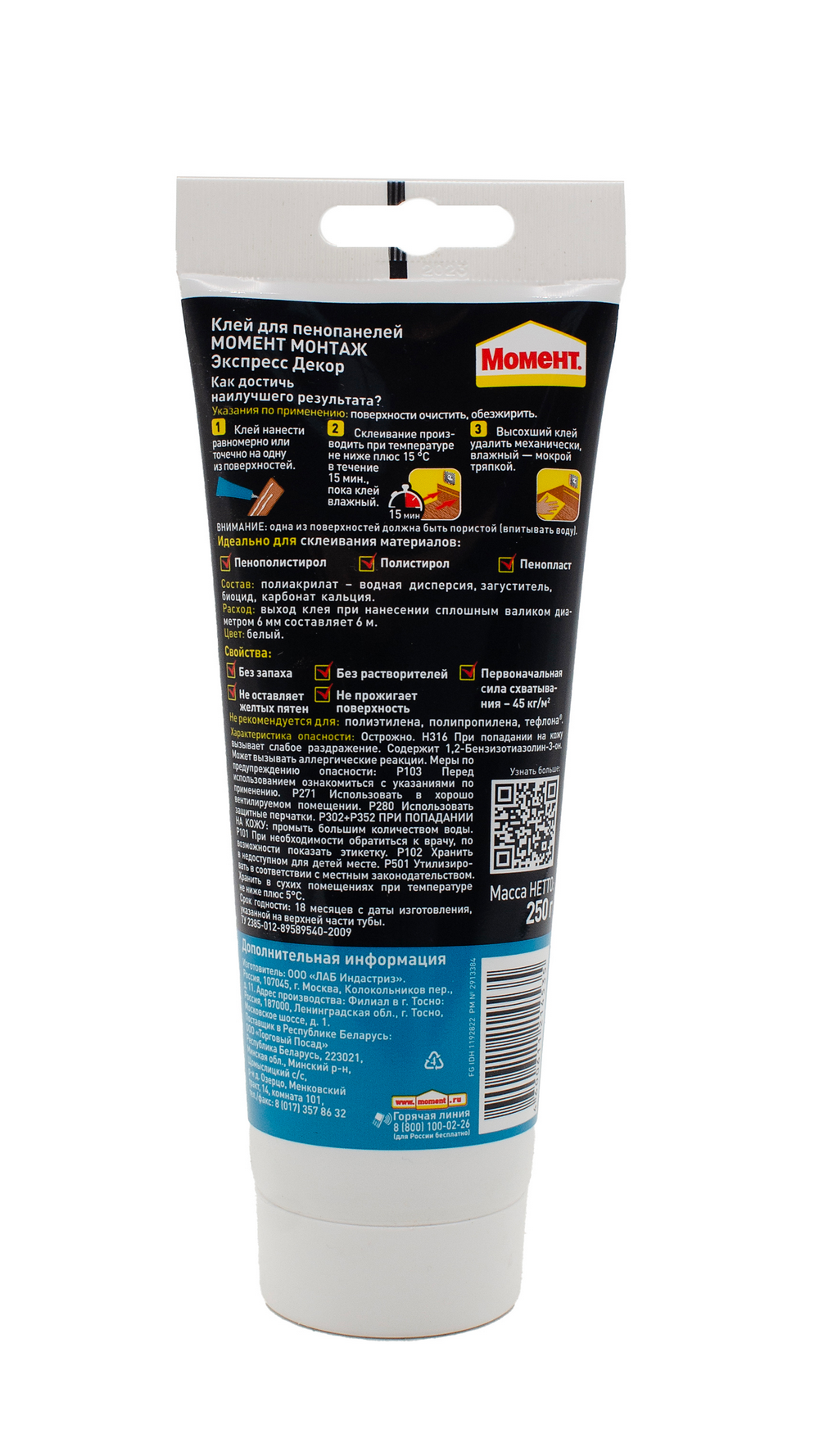Жидкие гвозди Момент, Экспресс Декор МВ-45, 250 г, универс, бел, 1192822 информация: