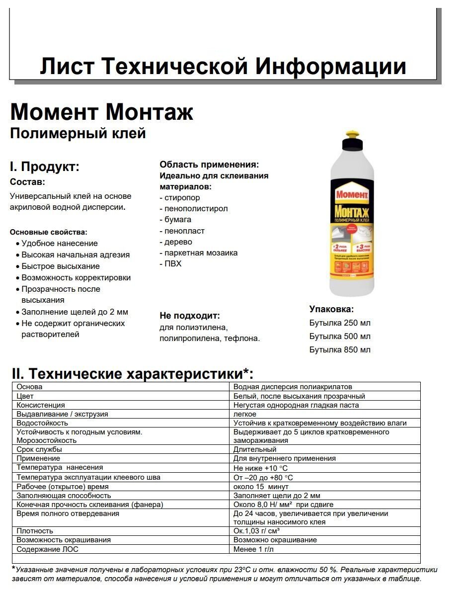| Дополнительная информация | клей полимерный, монтажный, момент монтаж, для панелей |
