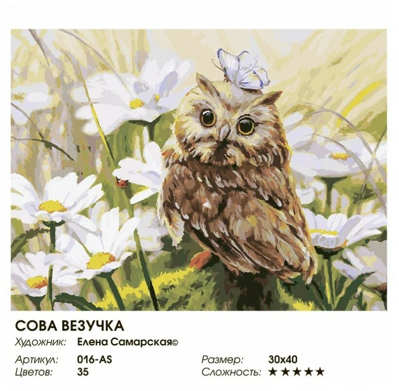 10 цен на Картина по номерам Белоснежка "Сова Везучка" / Раскраска / Холст на подрамнике 30х40 см. / Птицы