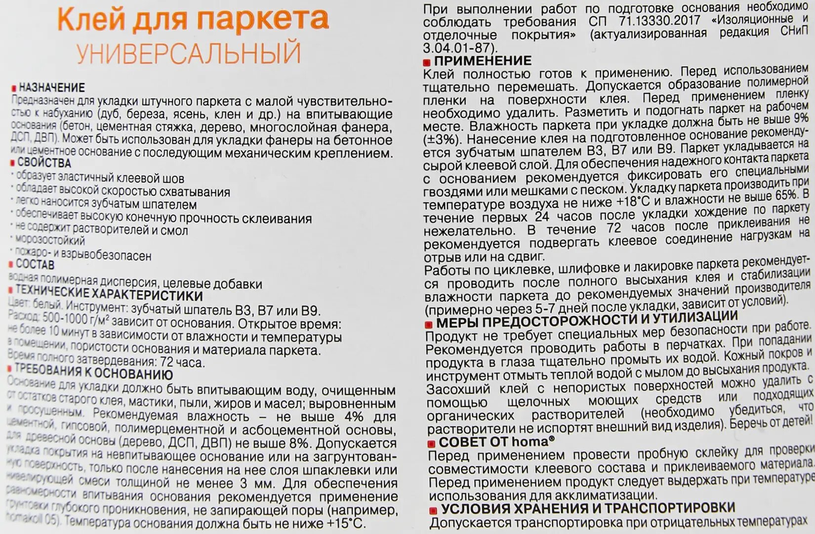Клей водно-дисперсионный Homakoll для паркета 4 кг информация: