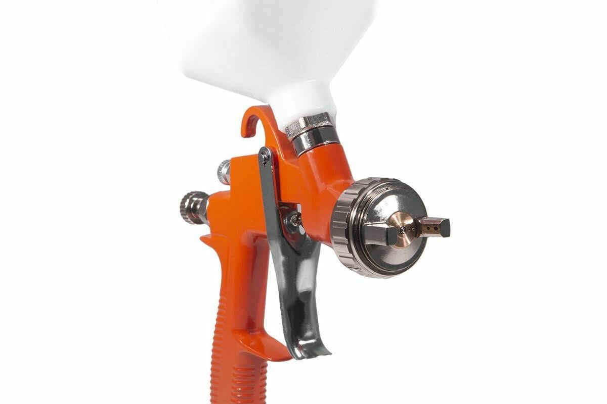 | Комплектация | 1. Краскопульт 2. Ключ гаечный 3. Щётка плоская 4. Щётка круглая 5. Фильтр сетчатый 6. Адаптер быстросъёмный 1/4'' с внутренней резьбой 7. Адаптер пистолет - шланг (6мм) 8. Адаптер резьбовой |