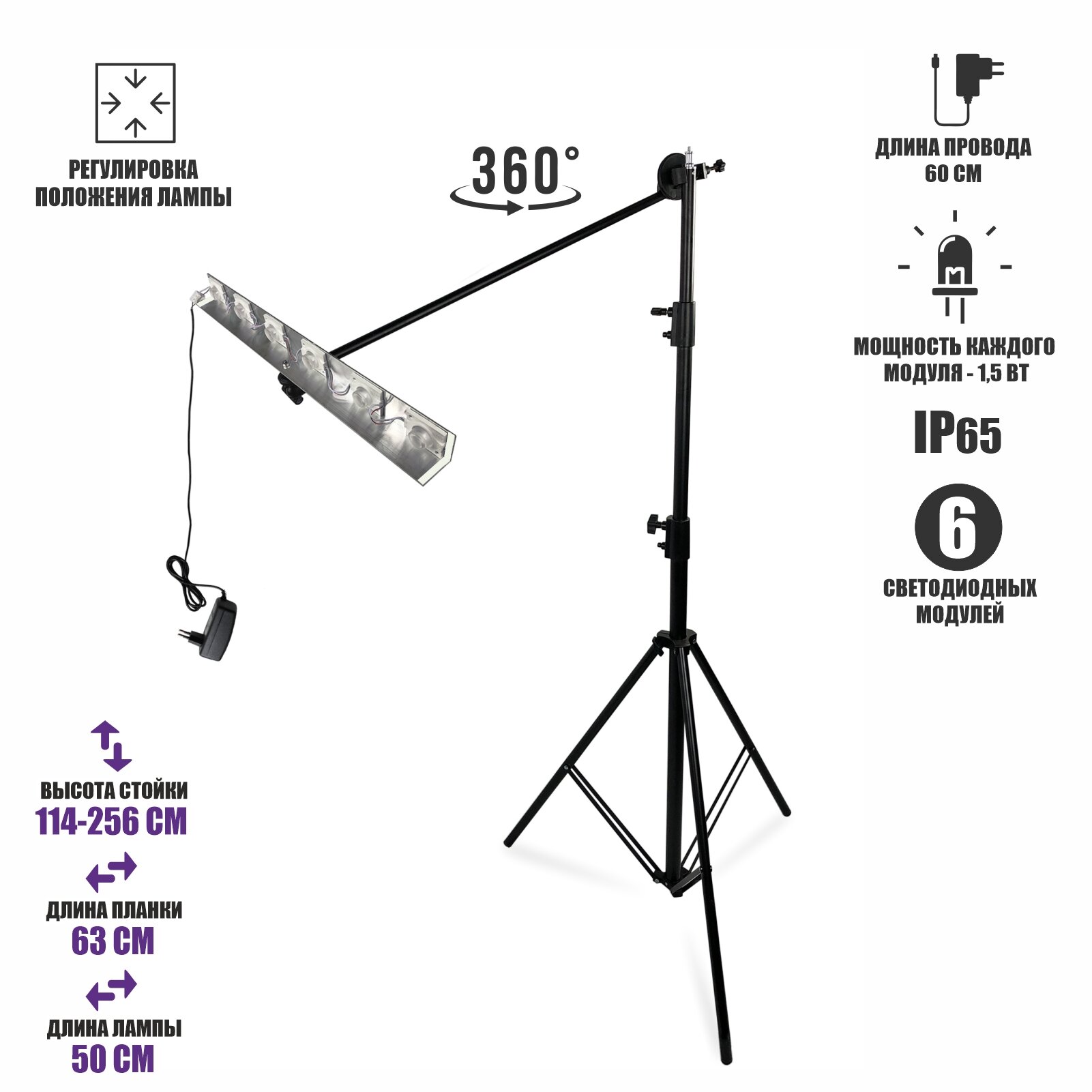 | Дополнительная информация | Лампа установлена на прочном штативе с возможностью регулировки высоты, что позволяет комфортно работать на разных уровнях. Специальный "журавль" дает возможность плавно менять угол наклона лампы, подстраиваясь под задачу |