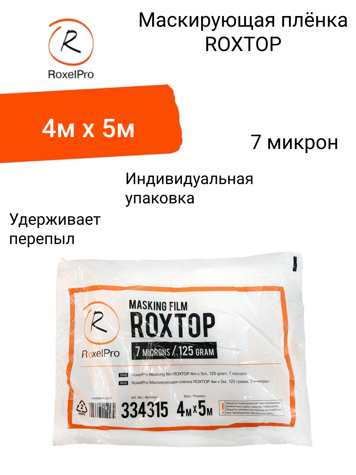 RoxelPro Маскирующая плёнка / пленка укрывная для ремонта ROXTOP 4м х 5м, 125г, 7 микрон, в индивидуальной упаковке 1 шт. информация: