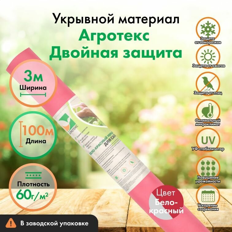 Спанбонд-60, двойная защита, 3х10м бело-красный коробка (8/1) Агротекс Форма выпуска пакет, размер .