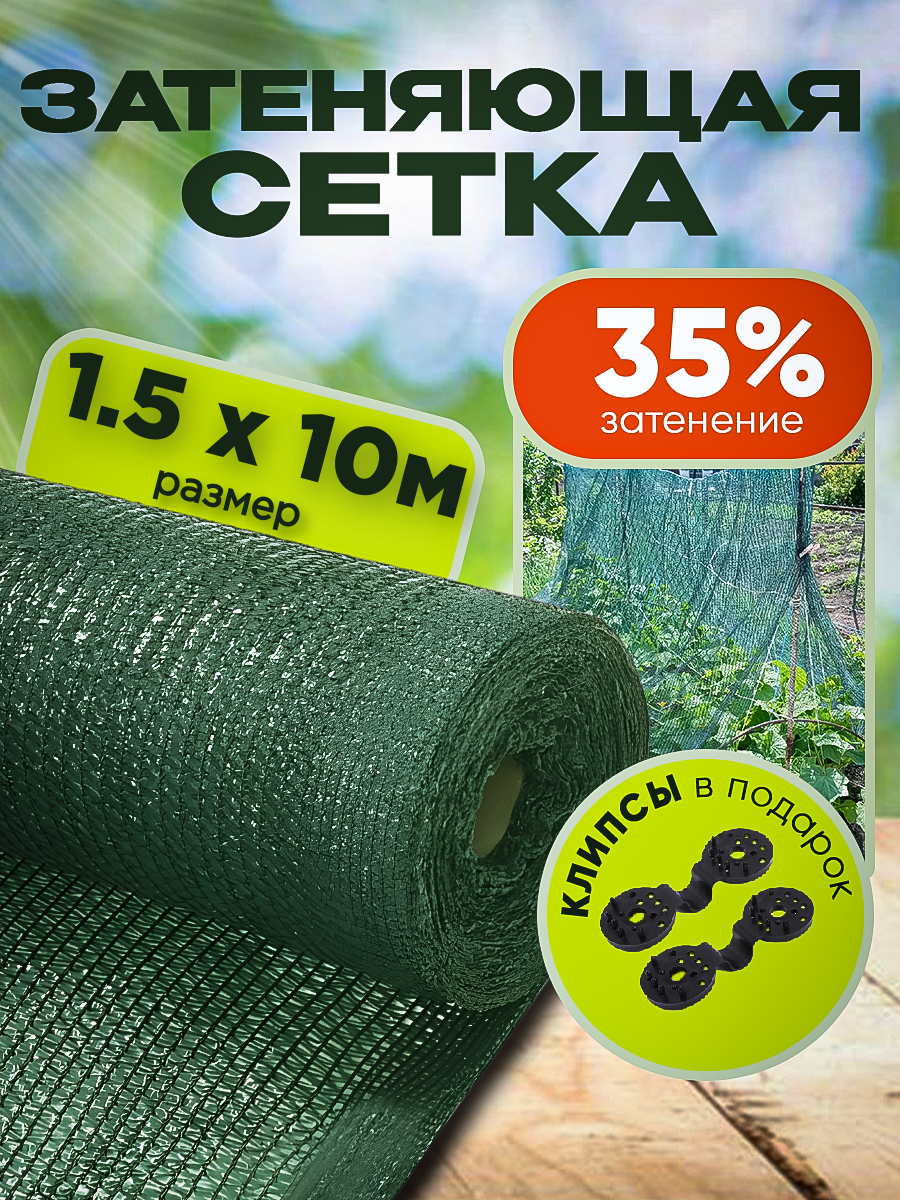 10 цен на Сетка затеняющая зеленая, затенение 35%, размер 1,5х10м