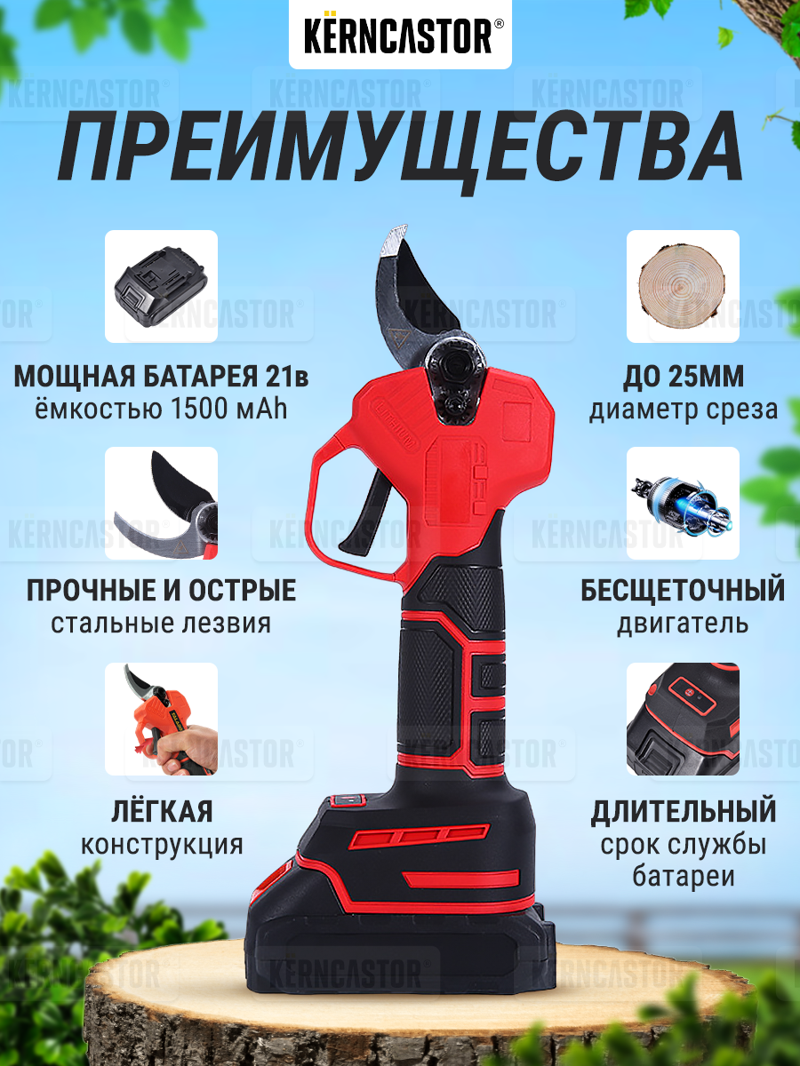 Секатор аккумуляторный садовый KERNCASTOR информация: