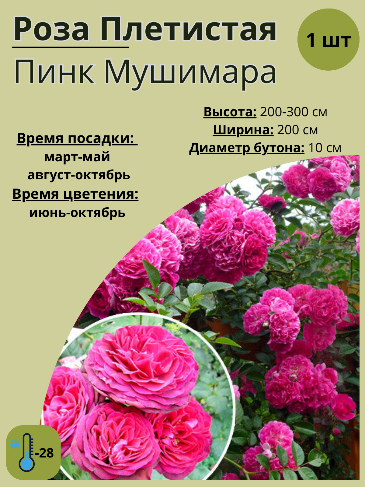 0 отзывов, средняя оценка 0. Чтобы купить «Роза плетистая Пинк Мушимара» по лучшей цене мы сканируем авито, алиэкспресс, маркет, озон, савеловский, плеер, горбушку, беру, официальные сайты и находим минимальную. Администрация не несет ответсвенность актуальность цен на Роза плетистая Пинк Мушимара, более подробно узнавайте на сайте магазина.