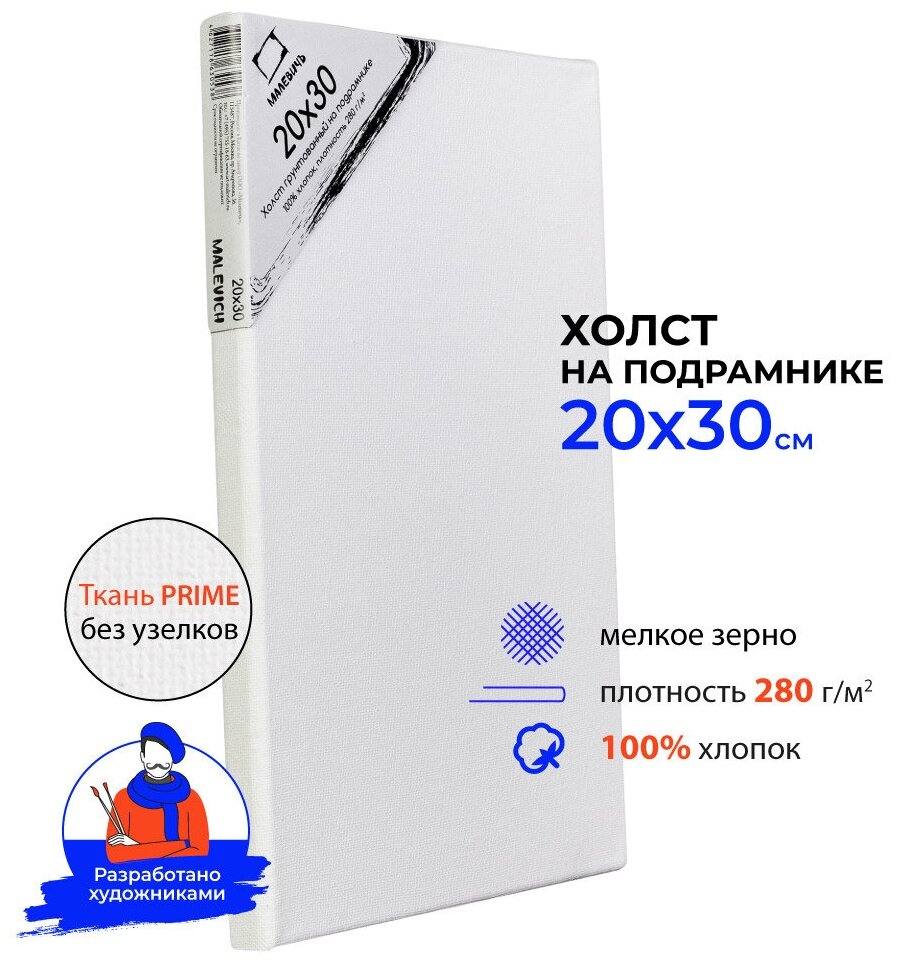Холст на подрамнике Малевичъ, хлопок 280 гр, 20х30 см,232030
