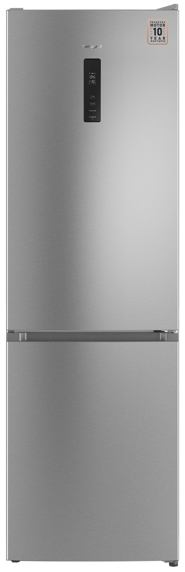 Отдельностоящий холодильник с инвертором Weissgauff WRK 2000 Total NoFrost Inverter Inox двухкамерный шириной 60 см, 3 года гарантии, Тихий режим 40 дБ, Полезный объём 342л, Электронное управление, Супер заморозка 15кг сутки, Зона свежести, А++ 65 910 ₽