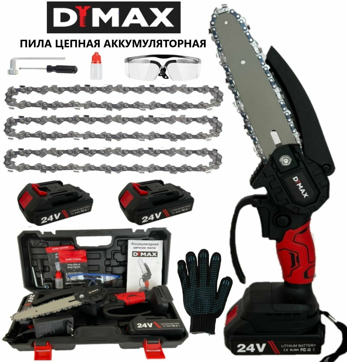 Пила аккумуляторная цепная 2 аккумулятора 21 В, 3 цепи Dymax DMXS6 Li, информация: