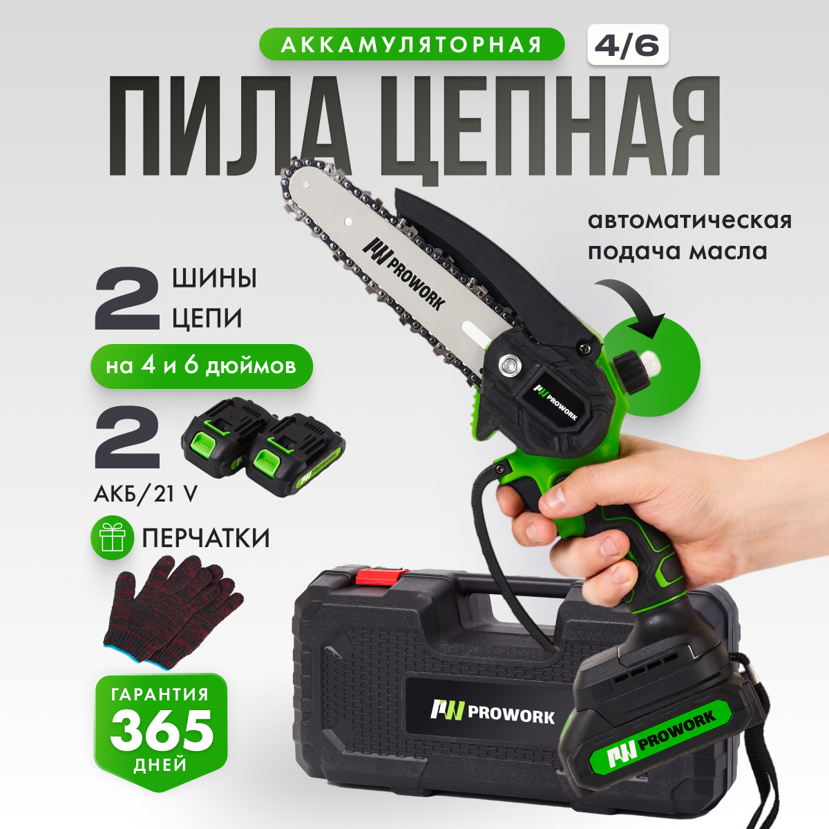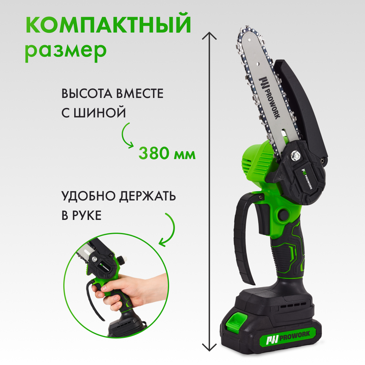 Пила аккумуляторная цепная мини садовая PROWORK информация: