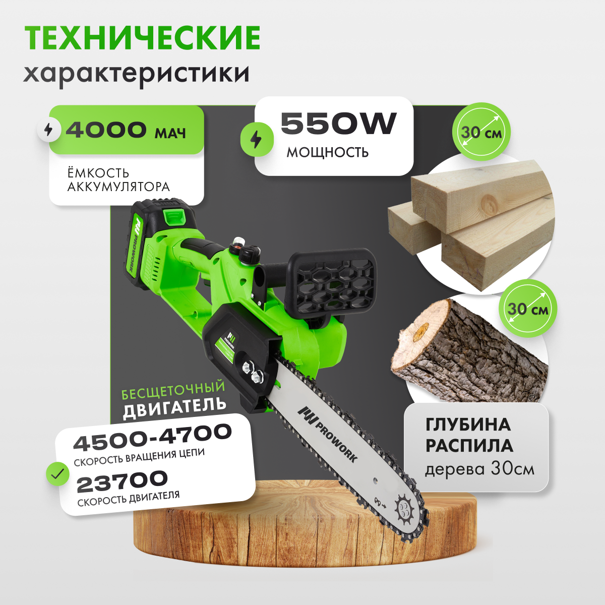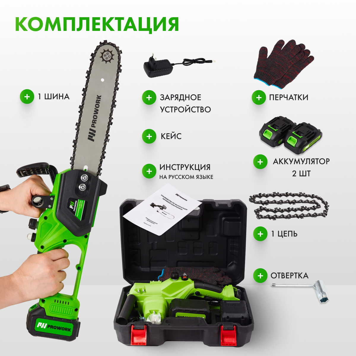 10 цен на Пила цепная аккумуляторная PROWORK 12" с двумя аккумуляторами и кейсом для хранения