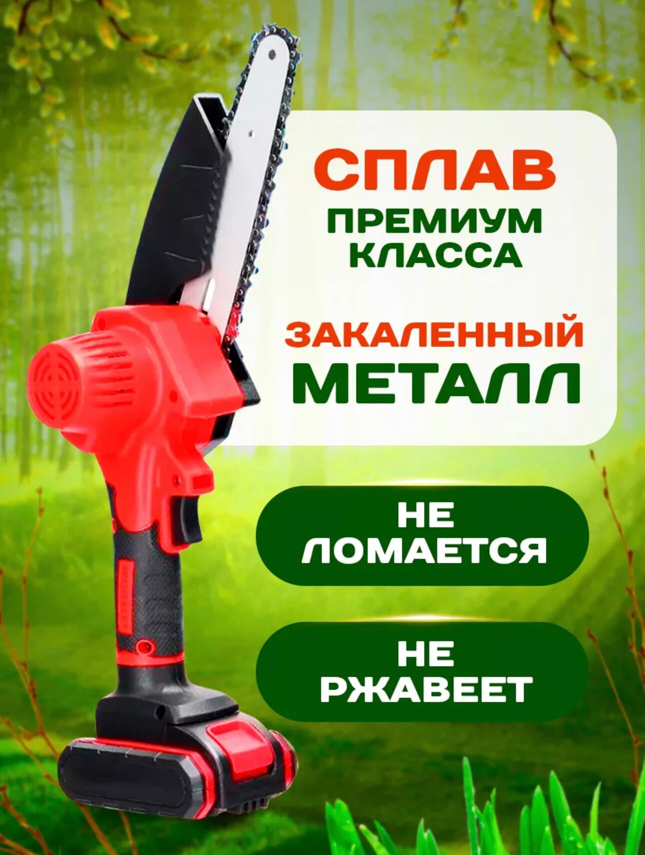 Цепная мини пила аккумуляторная ручная садовая, Портативная цепная аккумуляторная бензопила