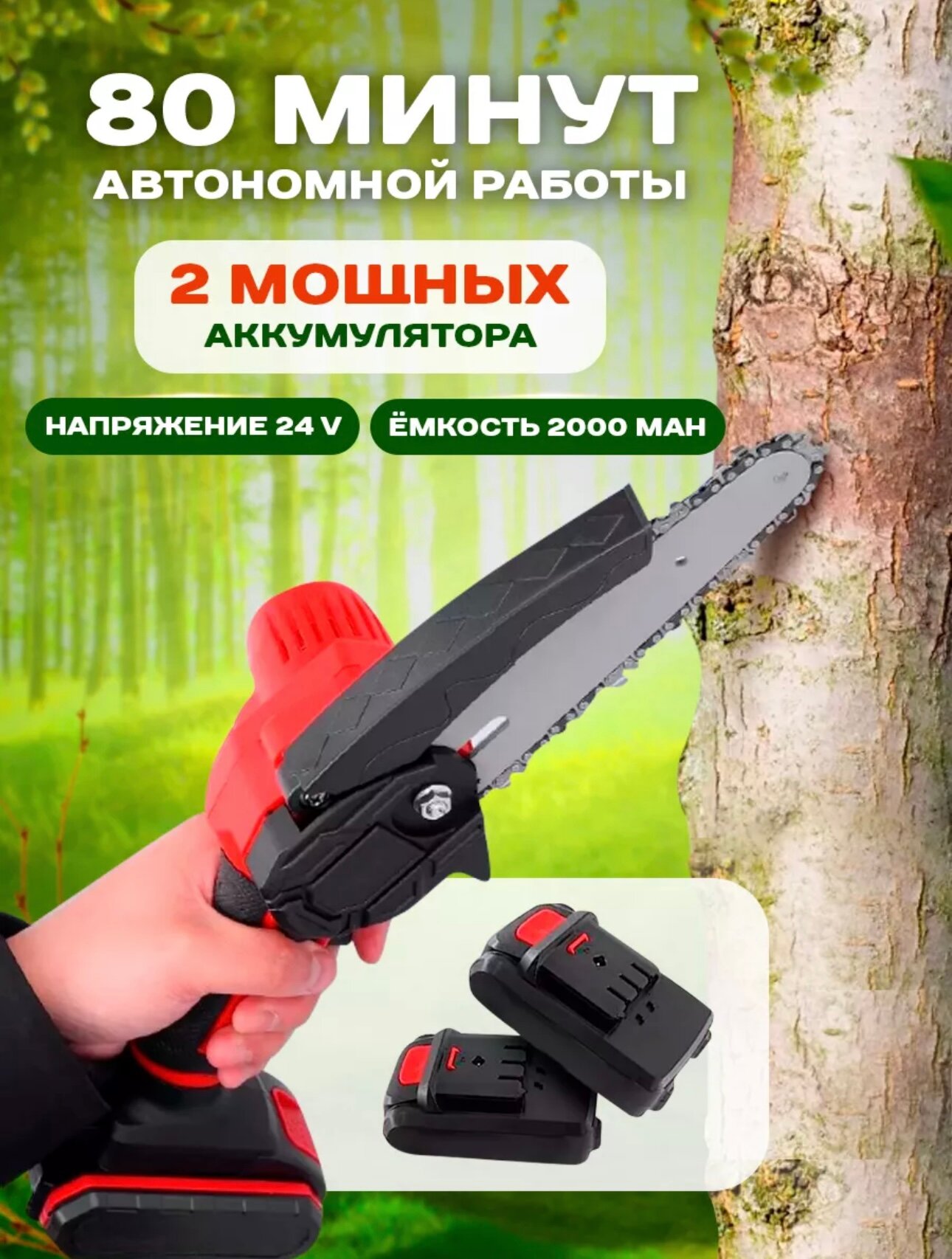 Пила аккумуляторная цепная 24Вт один аккумулятор Li-ion 2000 mAH