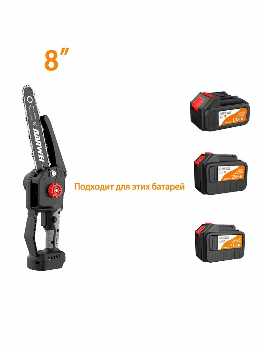 NANWEI 8" пила аккумуляторная цепная 21В беспроводной бензопила 6000r/min бесщёточный двигатель информация:
