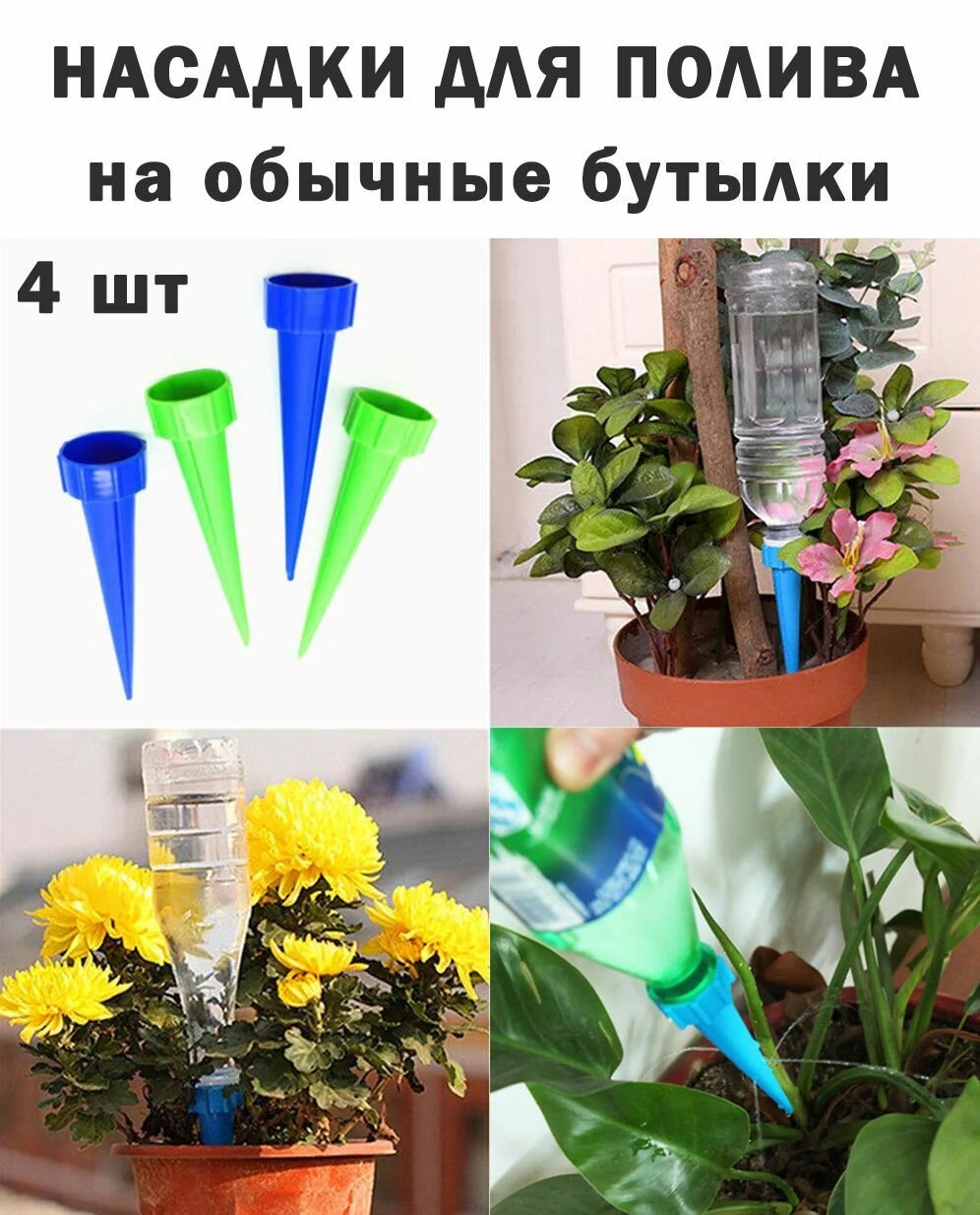 Комплект для полива растений, насадки на бутылки, 4 штуки / Автополив для комнатных растений информация: